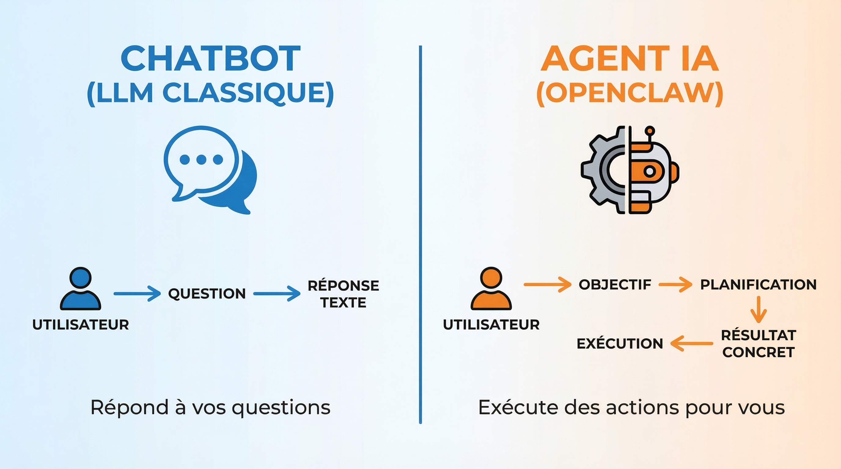 Quelle est la différence entre un chatbot classique et un agent IA comme OpenClaw ?